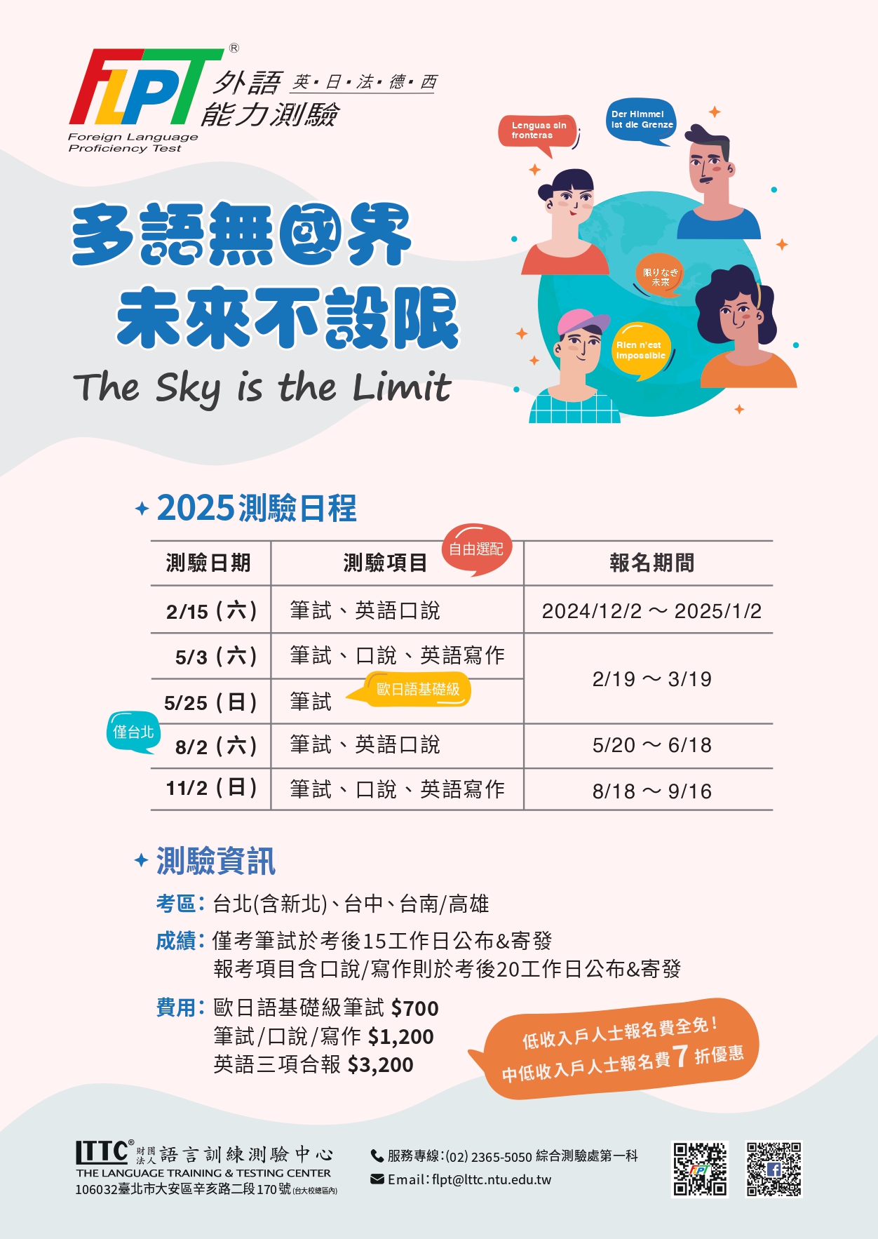 2025年11月「外語能力測驗」(FLPT)報名資訊如下,鼓勵同學報考。