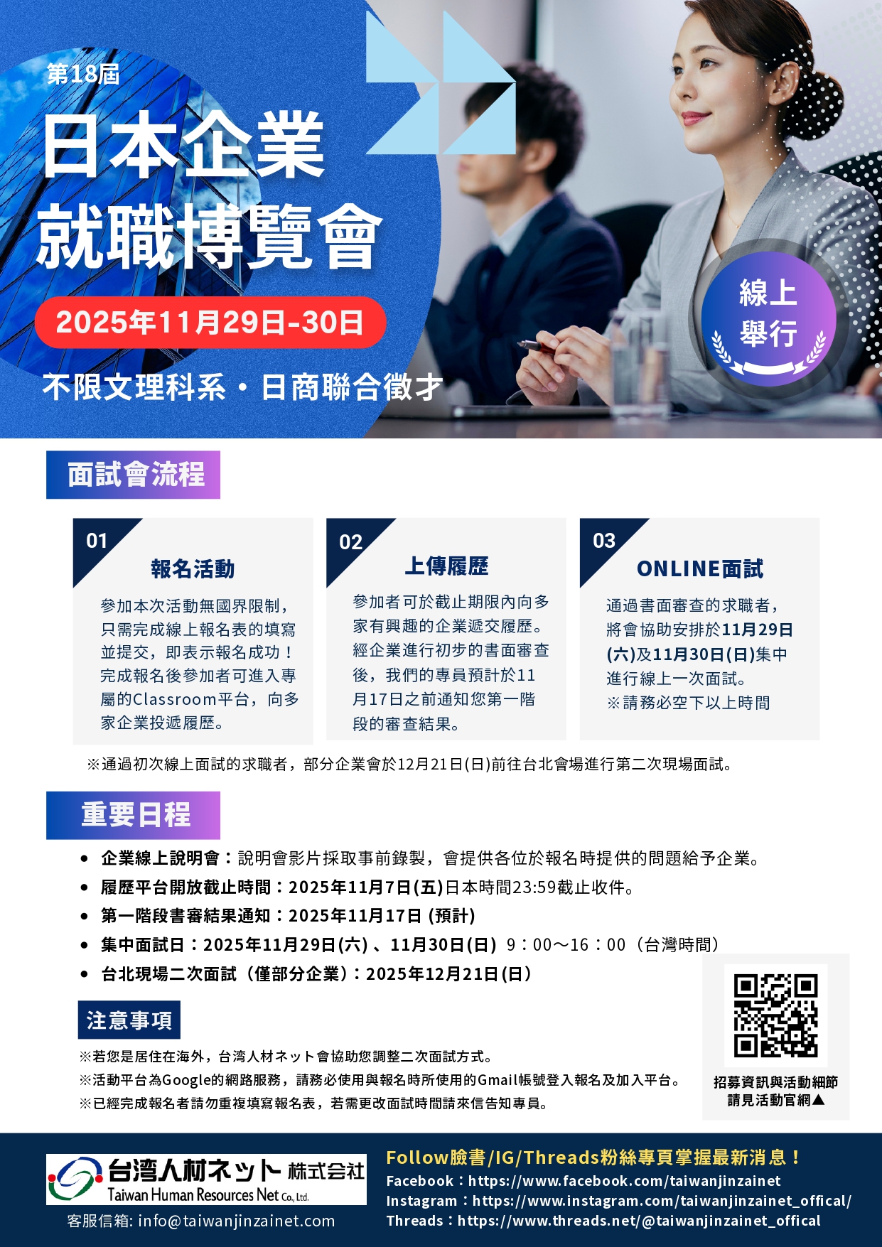 【徵才】台灣人材ネット_第十八屆日本企業就職博覽會線上徵才活動